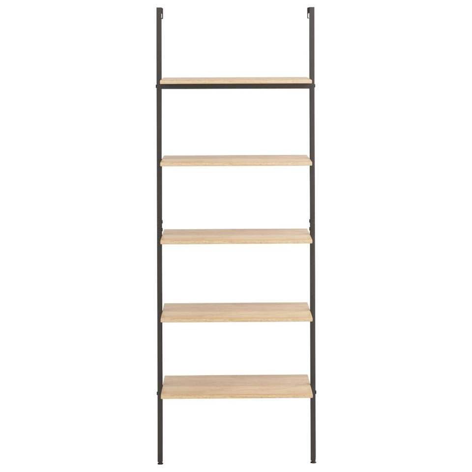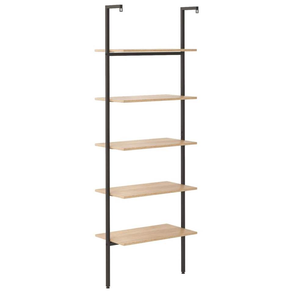 Light Brown and Black Engineered Wood and Steel Leaning Shelf Bookcases Product Category