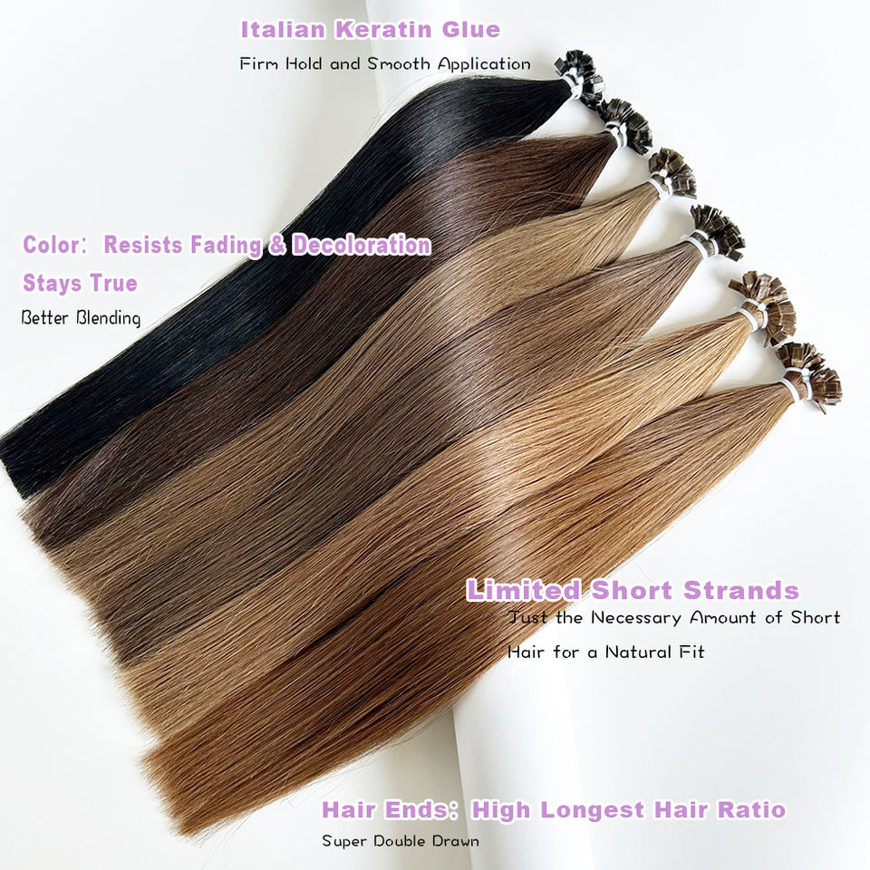 Colore marrone castagna chiaro cuticola Remy extension per capelli di lunga durata Super doppio disegnato punte piatte Ktips capelli Pre-incollati