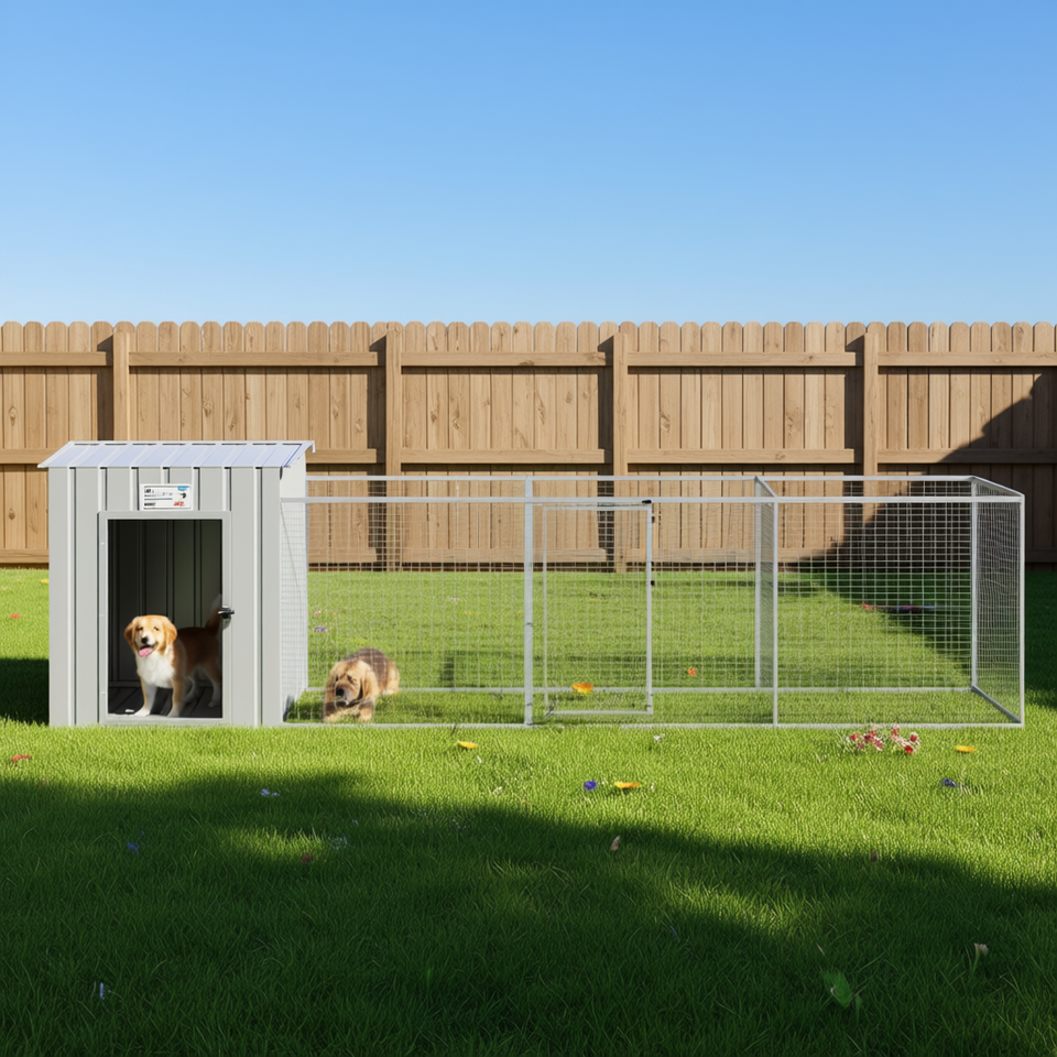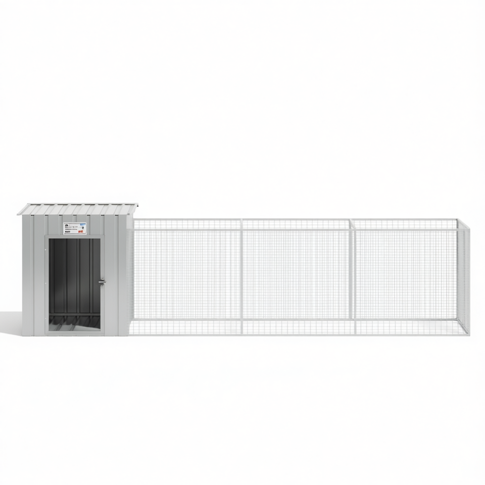 Cuccia per Cani in Acciaio Zincato Grigio Chiaro con Recinto 43.3x159.4x43.3, Alloggio Esterno per Animali Domestici di Taglia Grande