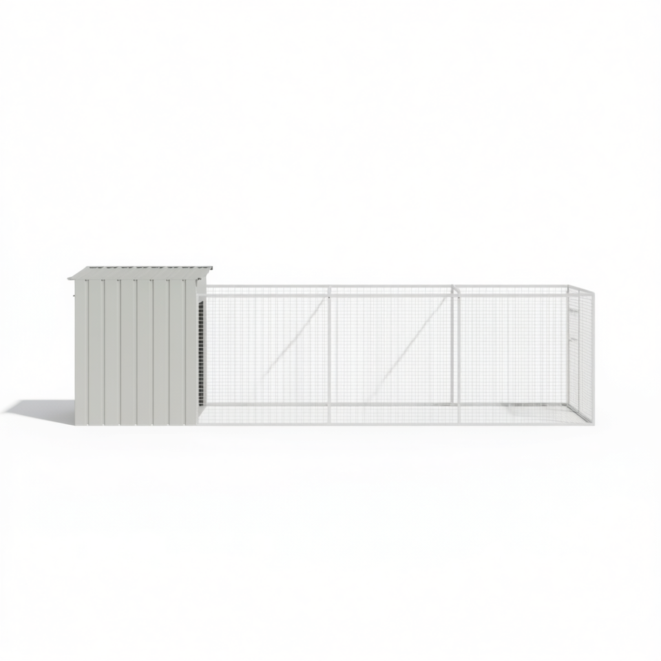 Cuccia per cani in acciaio zincato grigio chiaro con recinto 43.3x320.1x43.3, casetta da esterno per cani di taglia grande