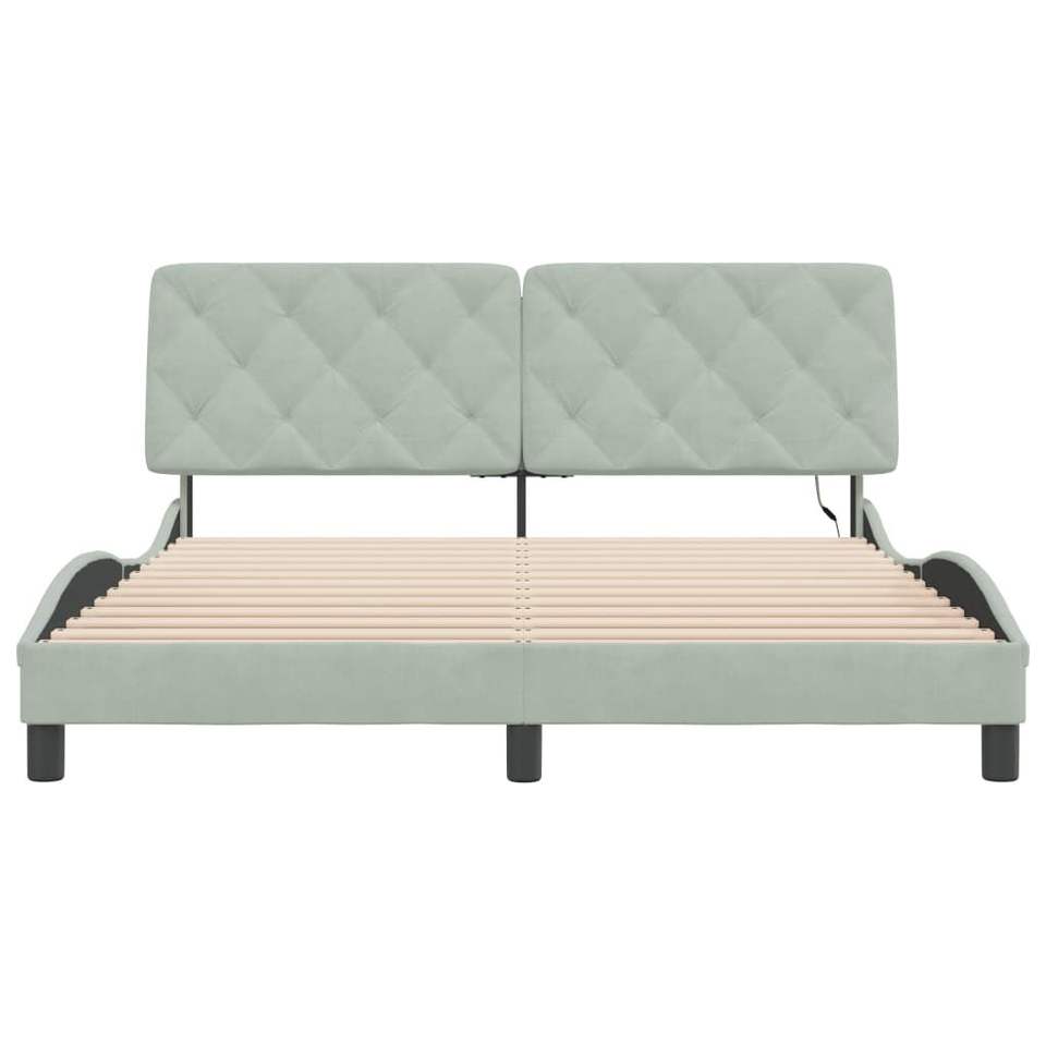 Light Gray 59.8"x79.9" Velvet Up-Holstered Bed Frame with LED Lights Without Mattress