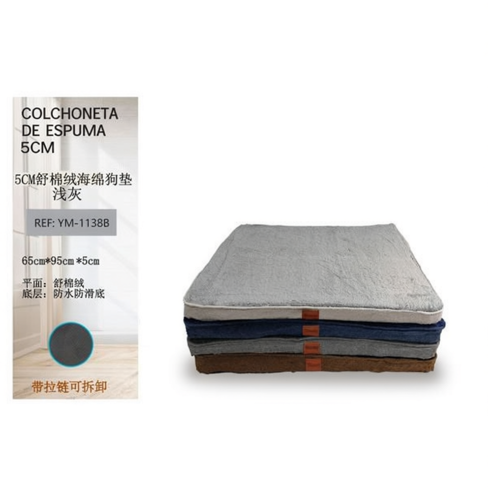 Cuscino per Animali Domestici in Spugna Peluche Grigio Chiaro 5cm, Dimensioni 65*95*5cm per Letti per Animali