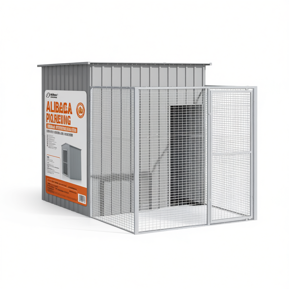 Cuccia per Cani Alibaca 65x98.8x71.3 Pollici in Acciaio Zincato con Recinto, Alloggio per Animali da Esterno