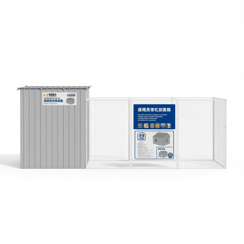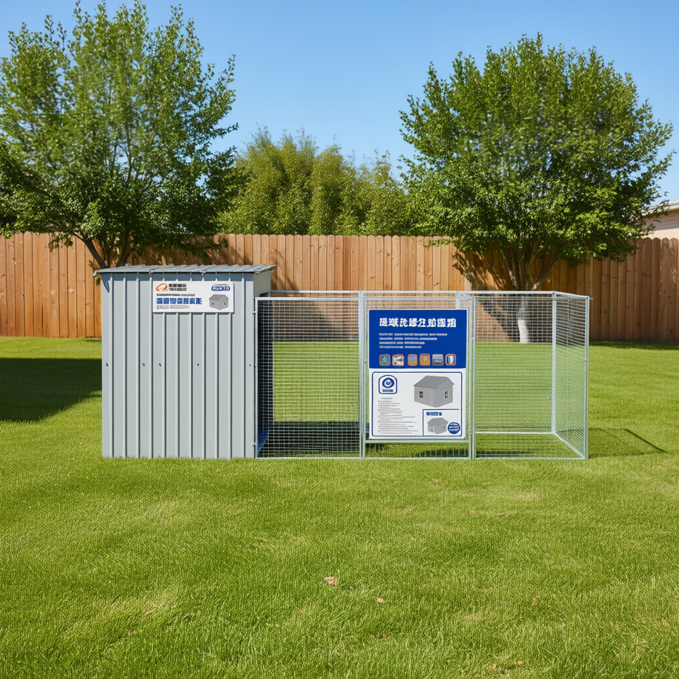 Light Gray Galvanized Steel Dog House 84.3x260.2x71.3 In With Run Outdoor Pet Housing Durable Large Breed