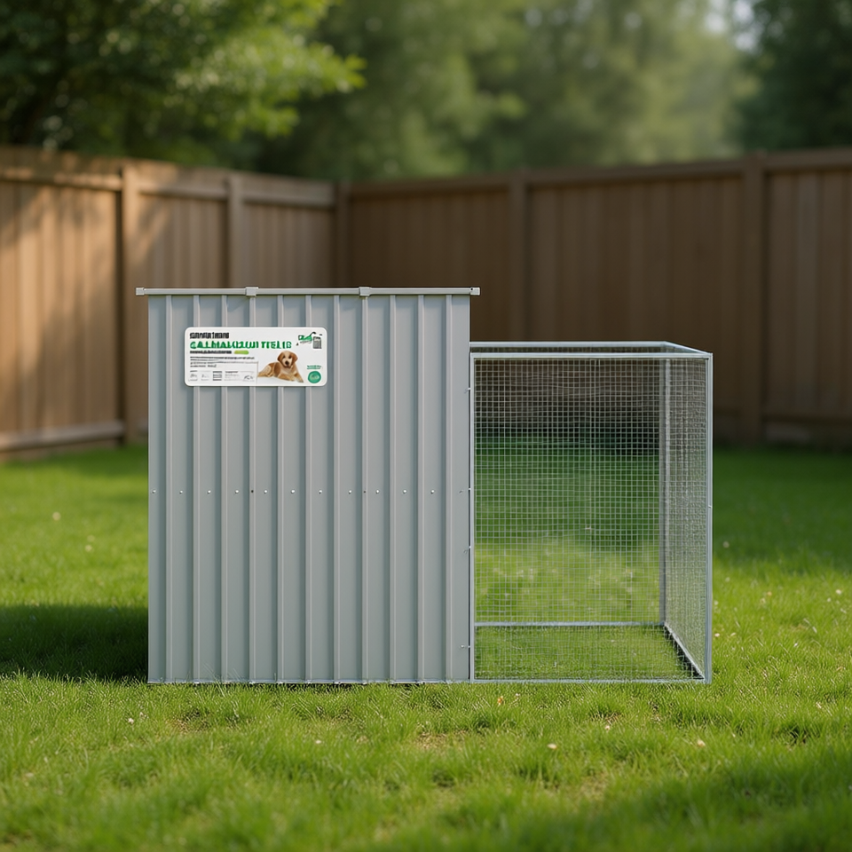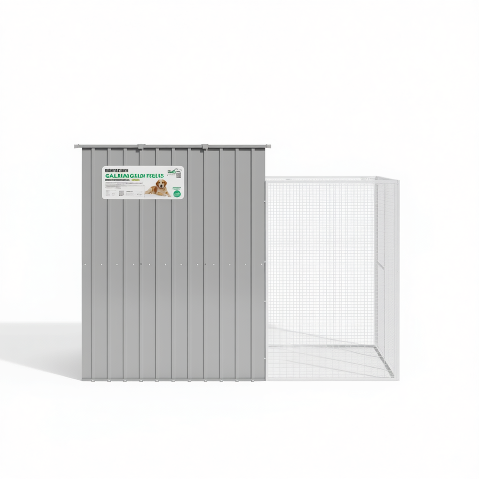 Galvanized Steel Dog House 84.3x99.6x71.3 In With Run Outdoor Large Breed Durable Pet Housing