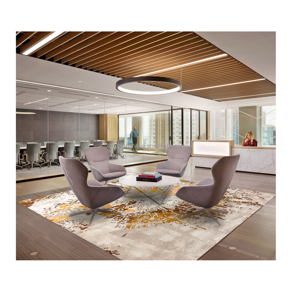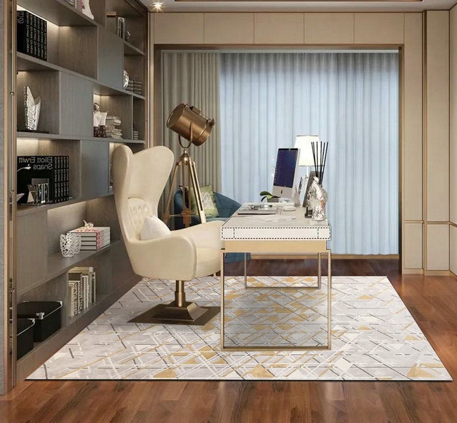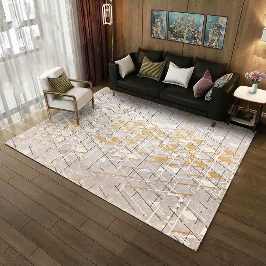 Tappeto Rettangolare in Acrilico Grigio Chiaro, Beige e Giallo per Studio e Soggiorno