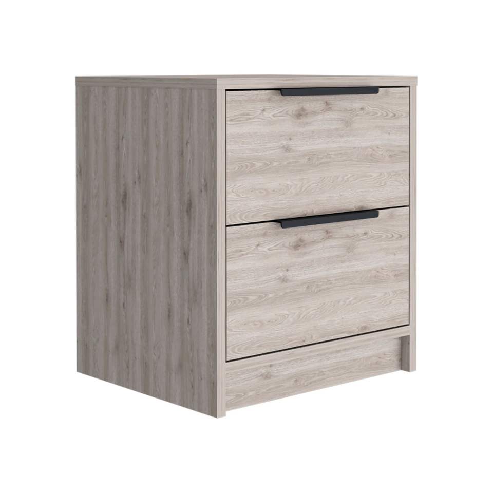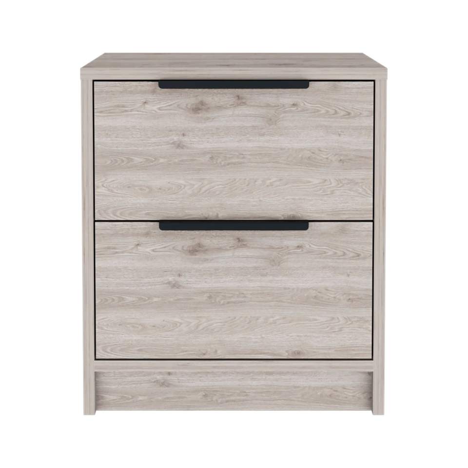 Comodino a due cassetti grigio chiaro con manico in metallo comodino per categoria di prodotto