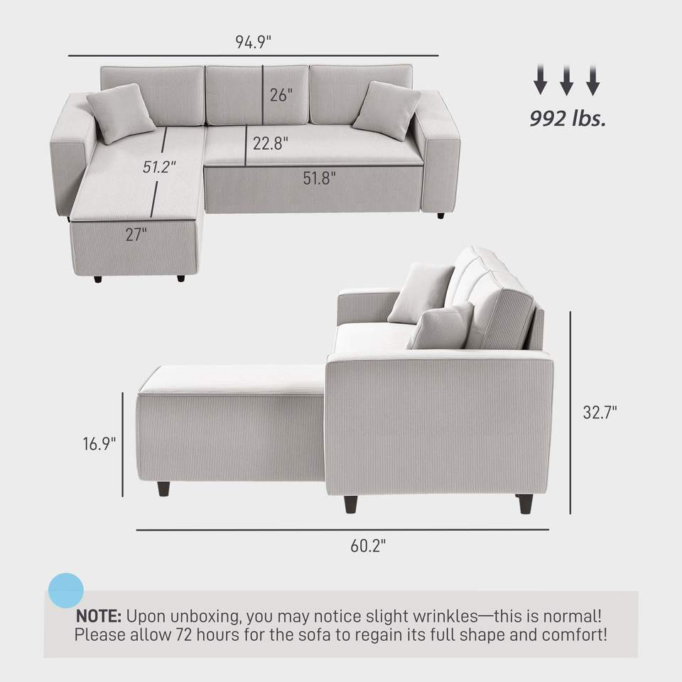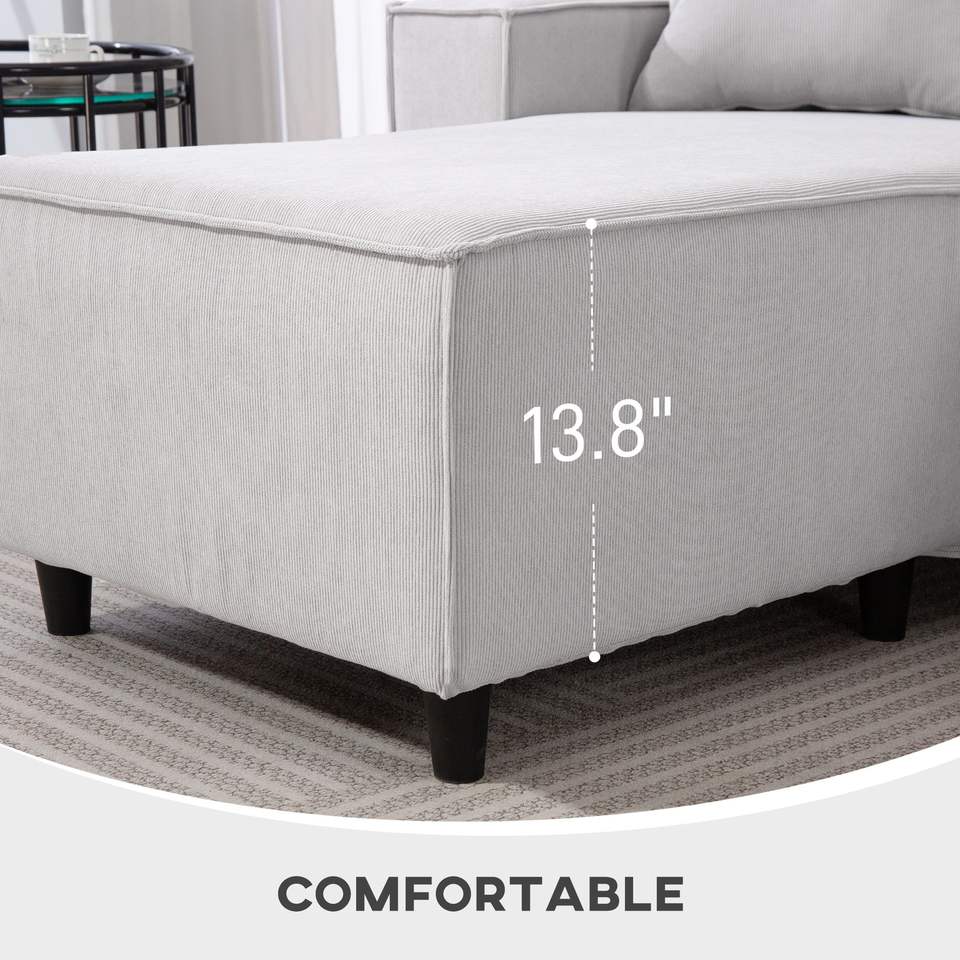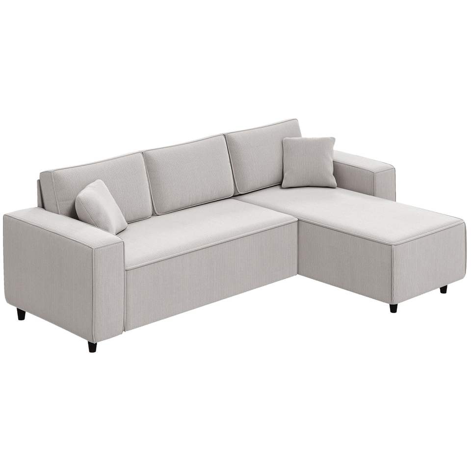 Divano Angolare a L in Velluto a Coste Grigio Chiaro con Chaise Longue Reversibile e Design Angolare a Molle Insacchettate per Soggiorno