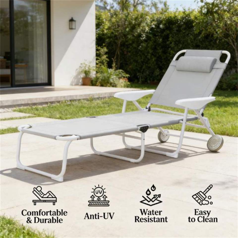 Sedia a Sdraio Pieghevole Grigio Chiaro per Esterni, Cortile e Prendisole