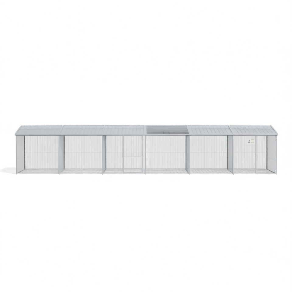 Gabbia per Polli in Acciaio Zincato Grigio Chiaro 237.4x38.6x35.4 Pollici con Tetto, Cuccia da Esterno per Animali Domestici