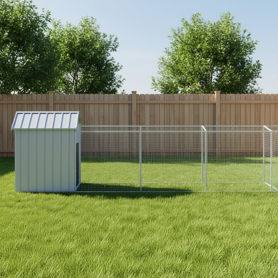 Cuccia per Cani in Acciaio Zincato Grigio Chiaro 46.1x320.1x48.4 Pollici con Tetto, Alloggio Esterno per Animali Domestici di Taglia Grande