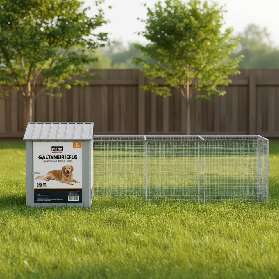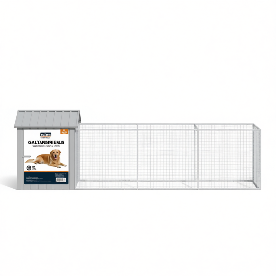 Galvanized Steel Dog House 46.1x159.4x48.4 In With Roof Outdoor Pet Housing For Large Dogs
