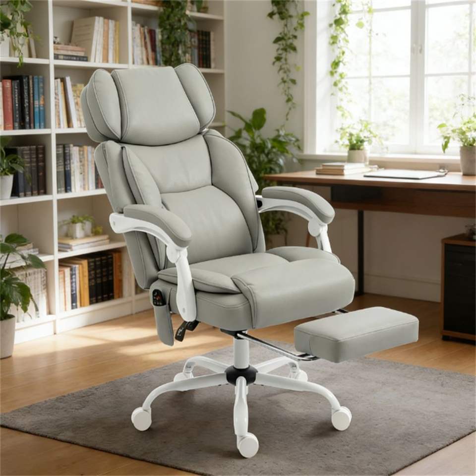 Sedia da Ufficio Grigio Chiaro con Funzione Massaggio per Lavoro al Computer