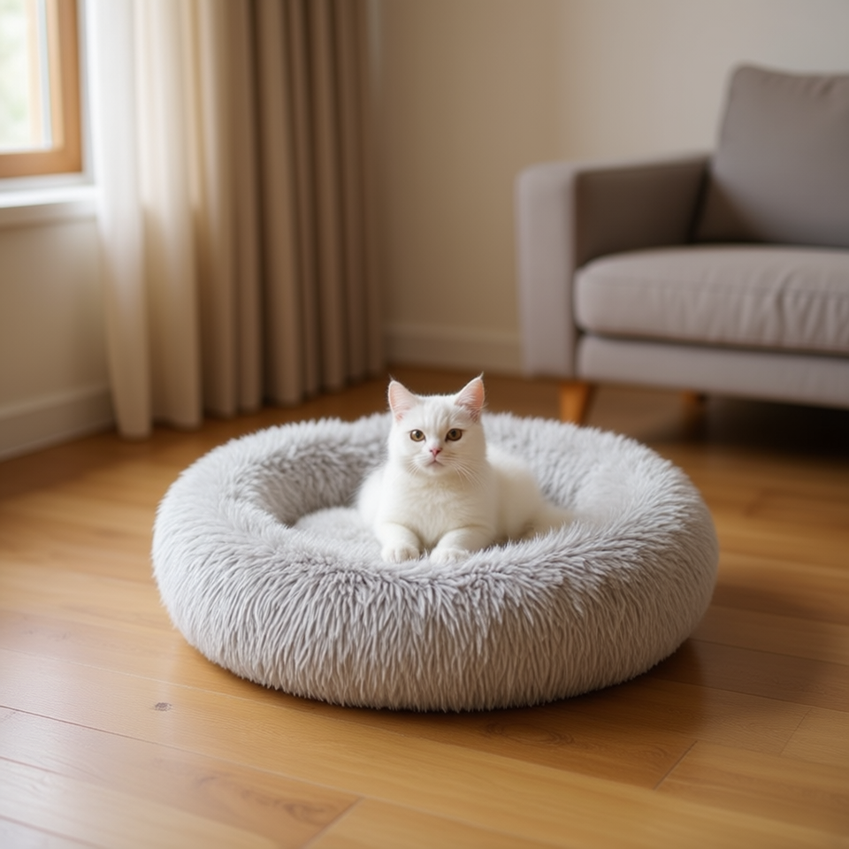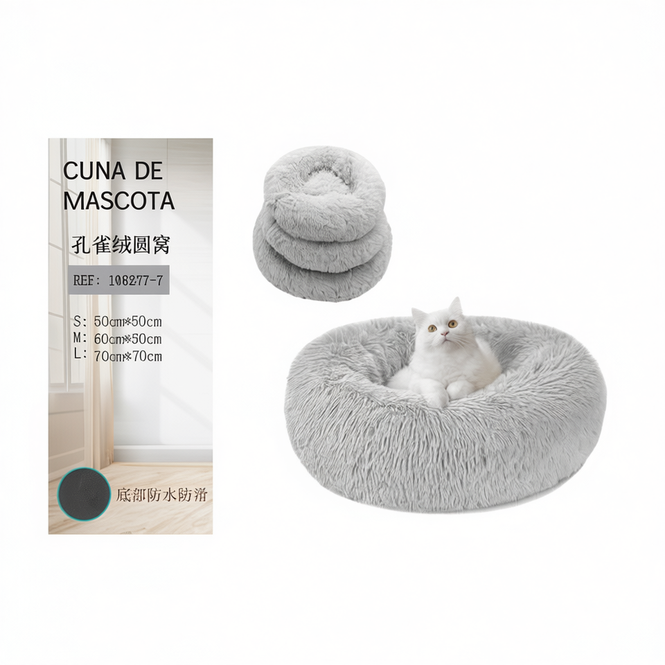 Light Gray Peacock Velvet Round Nest Three-Piece Set for Pets Stylish Pet Beds