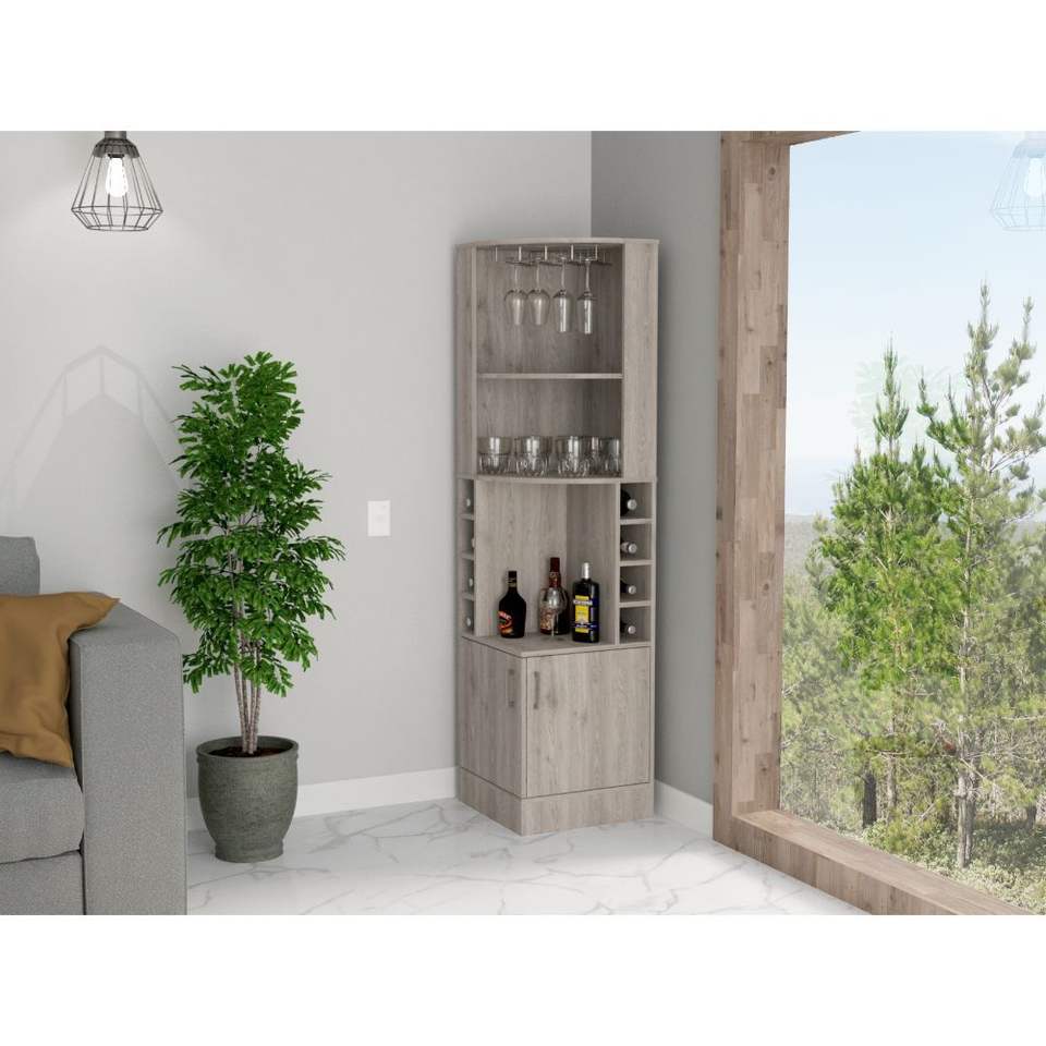 Mobile Bar Angolare Grigio Chiaro Syrah per Soggiorno con Otto Scomparti per Bottiglie, Doppia Porta e Due Ripiani Aperti