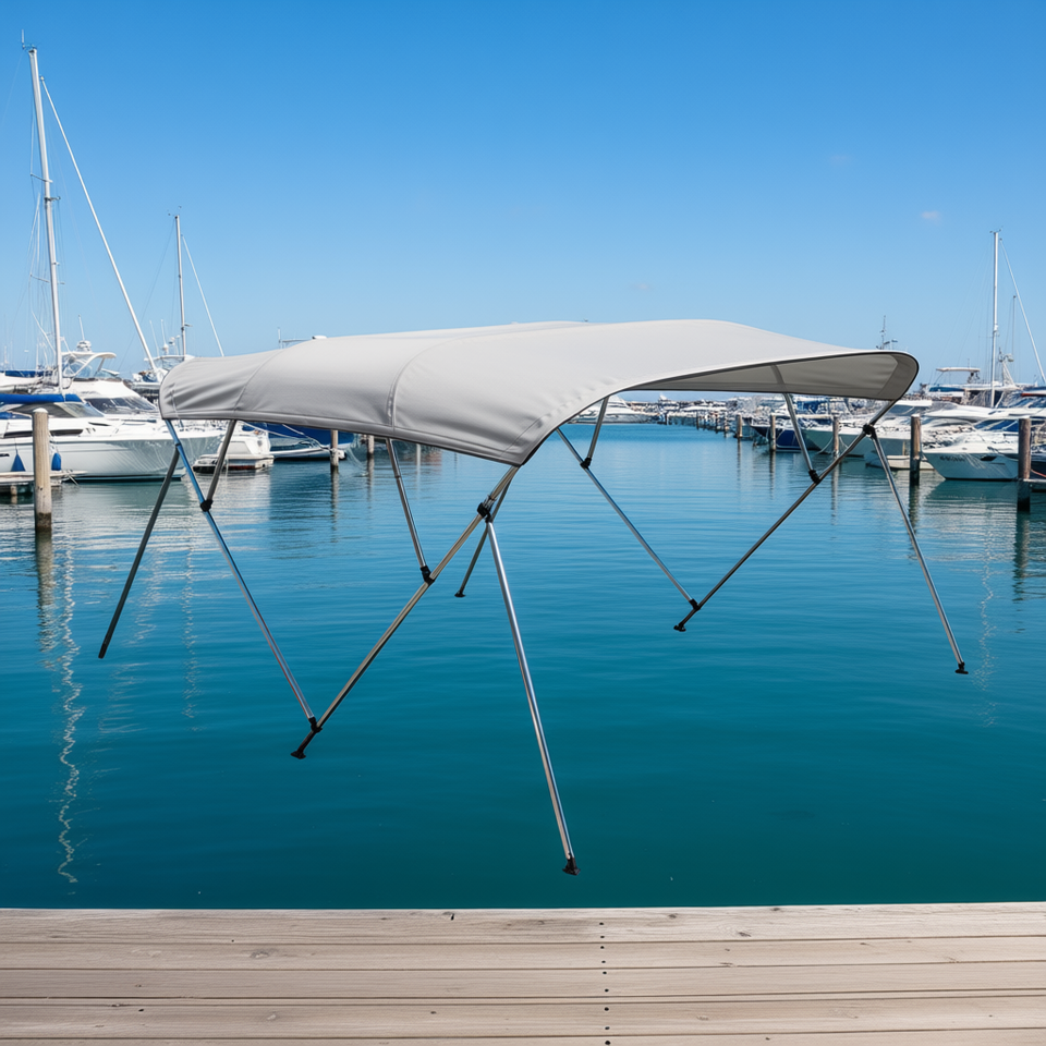 Tendalino Bimini per Barca Grigio Chiaro a 4 Archi, in Poliestere 600D, Telaio in Alluminio, Impermeabile, Protezione Solare, 96"Lx79-84"Wx54"H, Modello a 2 Supporti