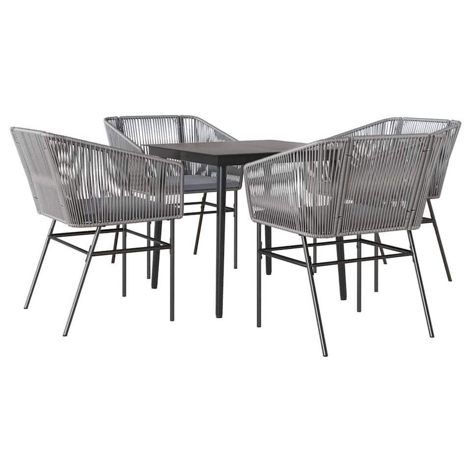 Set da Pranzo da Giardino Grigio Chiaro e Nero per 4 Persone, Struttura in Metallo e Rattan, Arredamento Contemporaneo da Esterno Resistente alle Intemperie