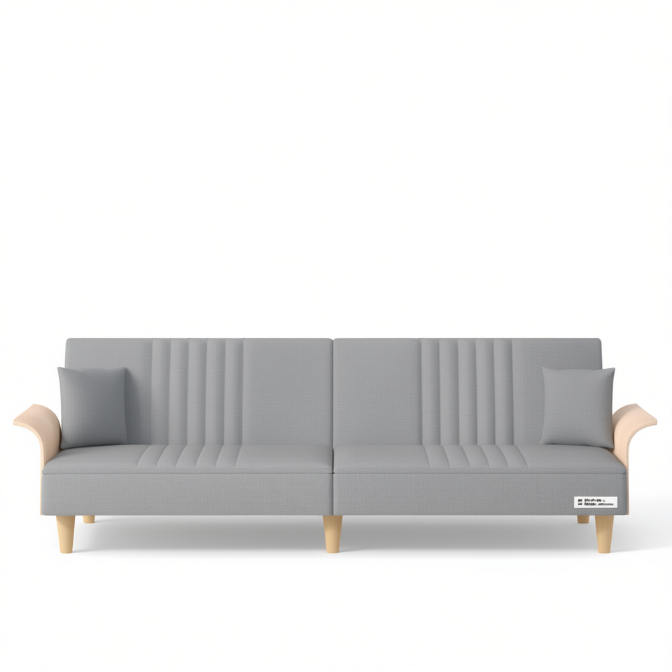Divano Letto in Tessuto Grigio Chiaro 100% Poliestere con Telaio in Compensato Convertibile Moderno per Soggiorno 4 Posti