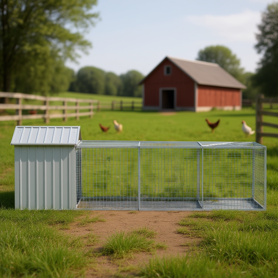 Light Grey Galvanized Steel Chicken Cage 46.1 X 159.4 X 48.4 In For Animal Housing