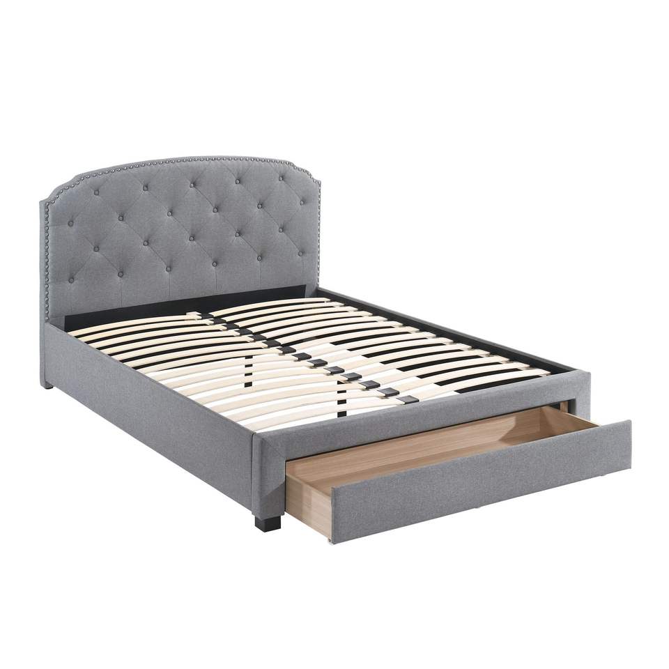 Letto matrimoniale grigio chiaro con testiera capitonné a bottoni, contenitore e struttura imbottita in tessuto di juta, 1 pz.
