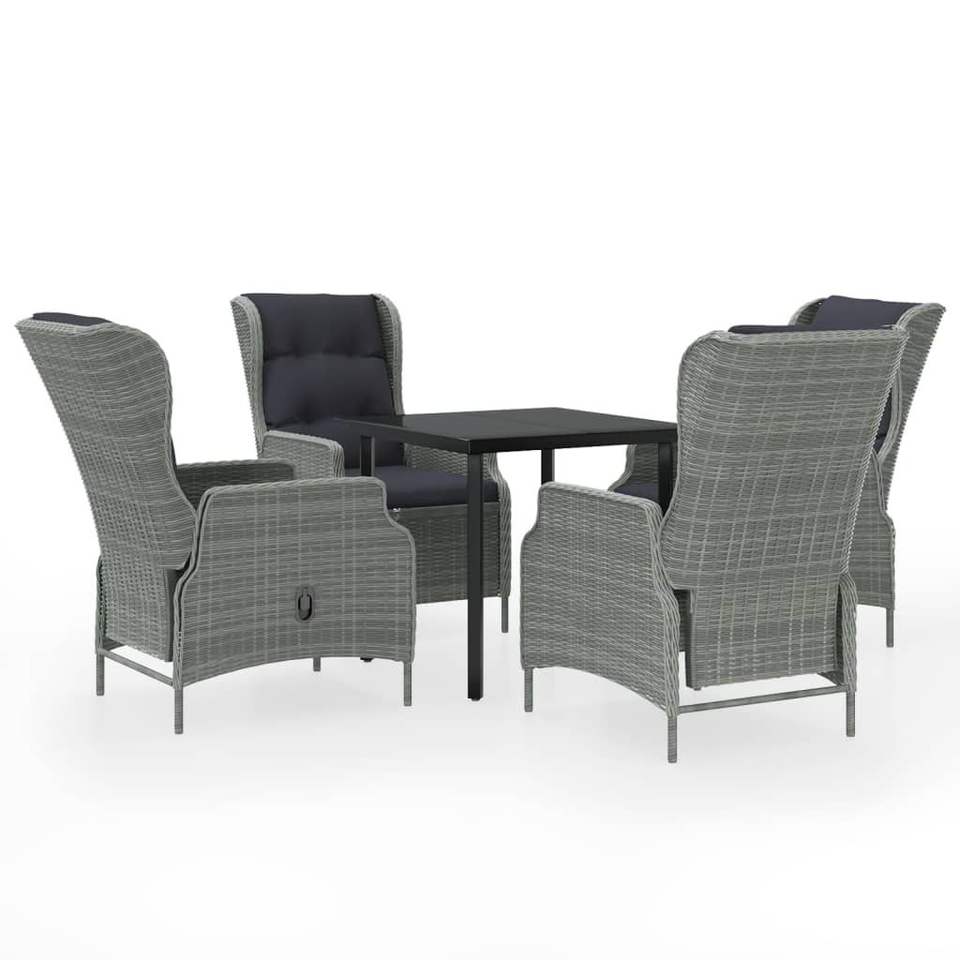 Set da Pranzo da Giardino in Rattan Grigio Chiaro per 4 Persone, Resistente alle Intemperie, Design Contemporaneo