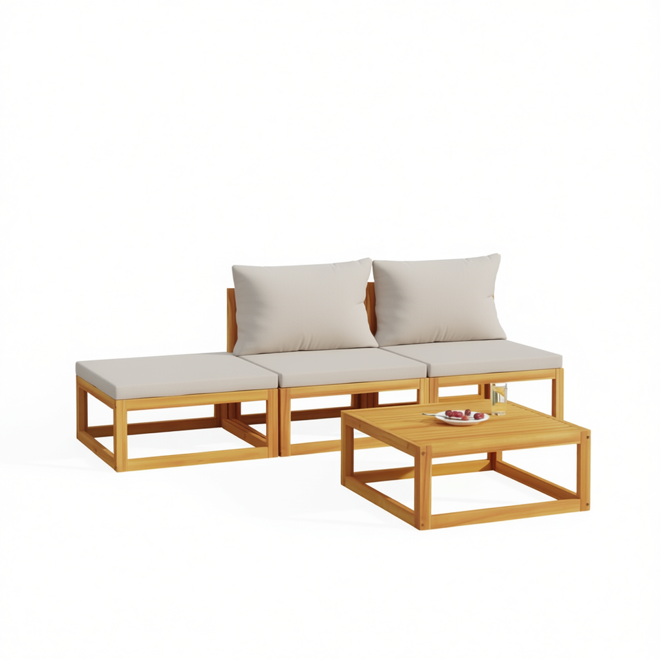 Set Lounge da Giardino Modulare in Legno di Acacia Grigio Chiaro, 3 Posti, Arredamento da Esterno dal Design Minimalista