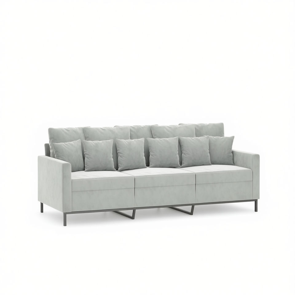 Light Grey Velvet 3 Seater Sofa 100% Polyester Metal Legs Modern Living Room Furniture