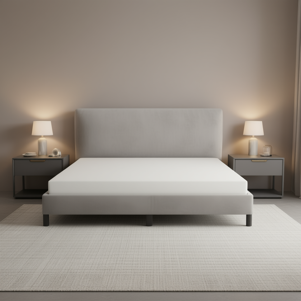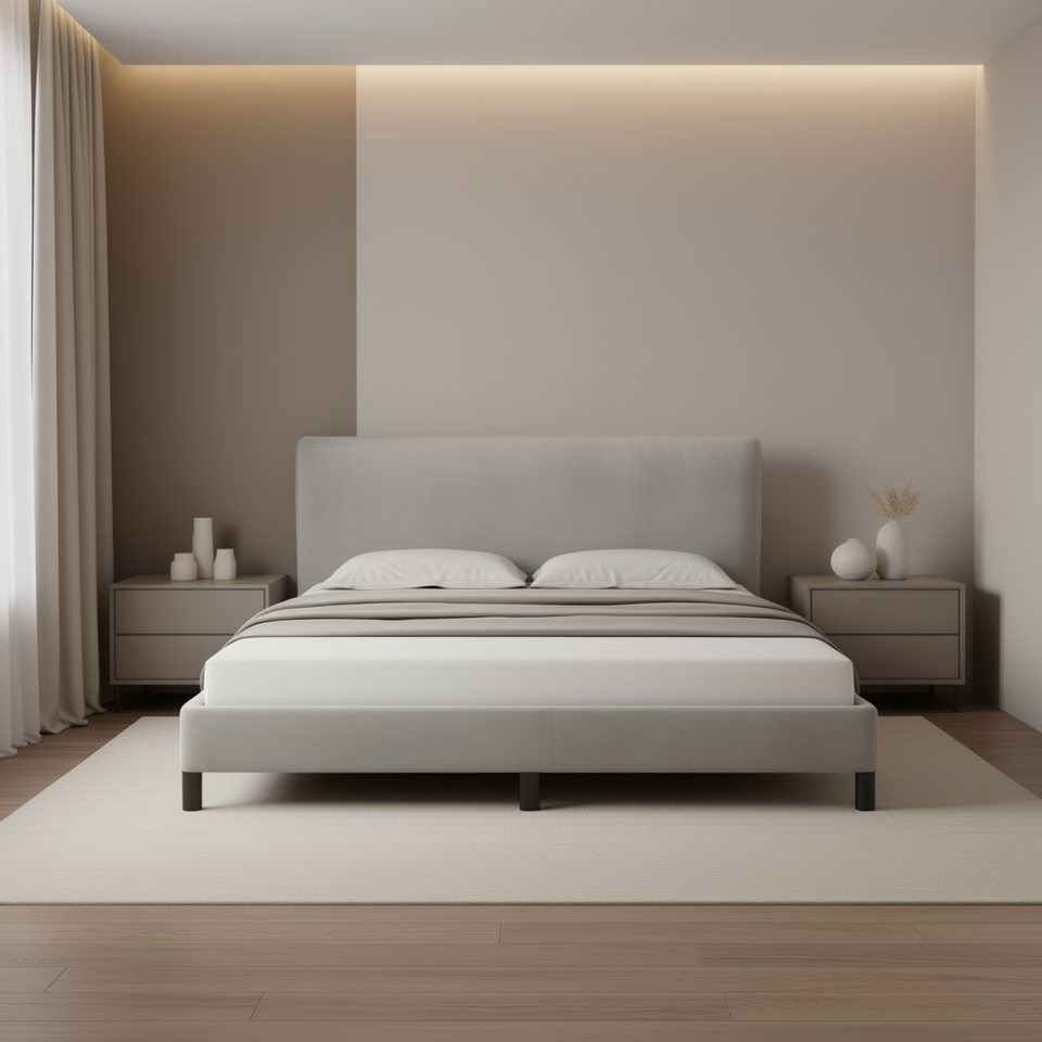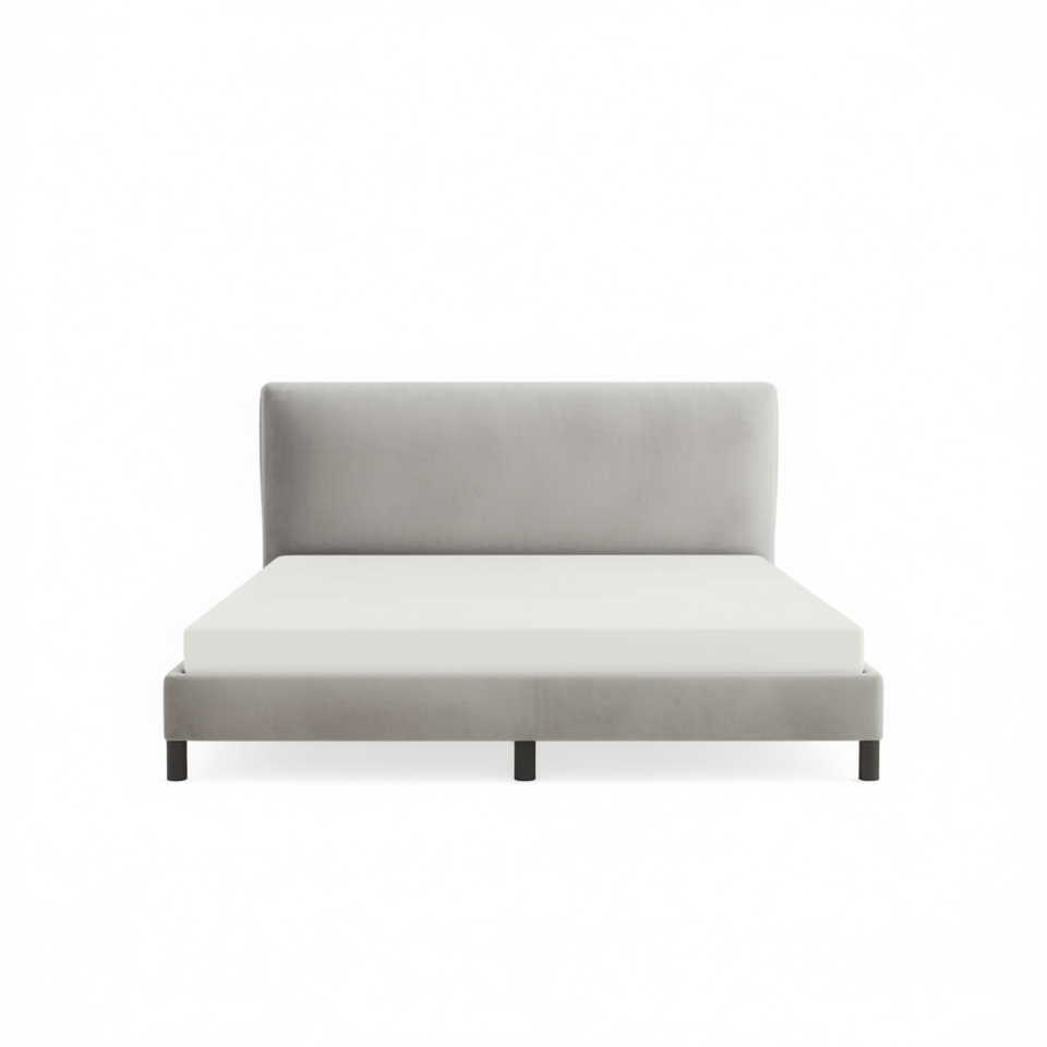 Letto Imbottito in Velluto Grigio Chiaro con Testiera, Stile Moderno, Struttura in Legno Ingegnerizzato e Compensato, Arredamento per Camera da Letto