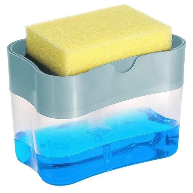 Light Grey/White/Dark Grey 400ml Dishwashing Liquid Dispenser with Sponge 14x9x11 Cm-Dispenser
