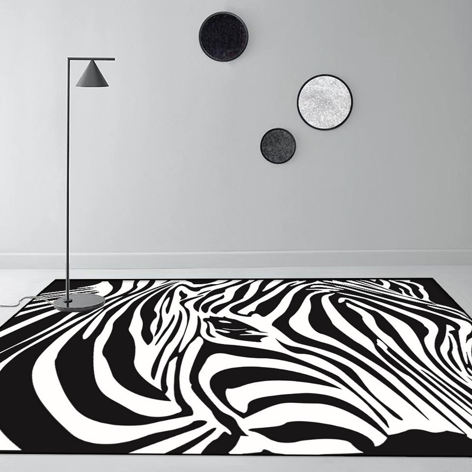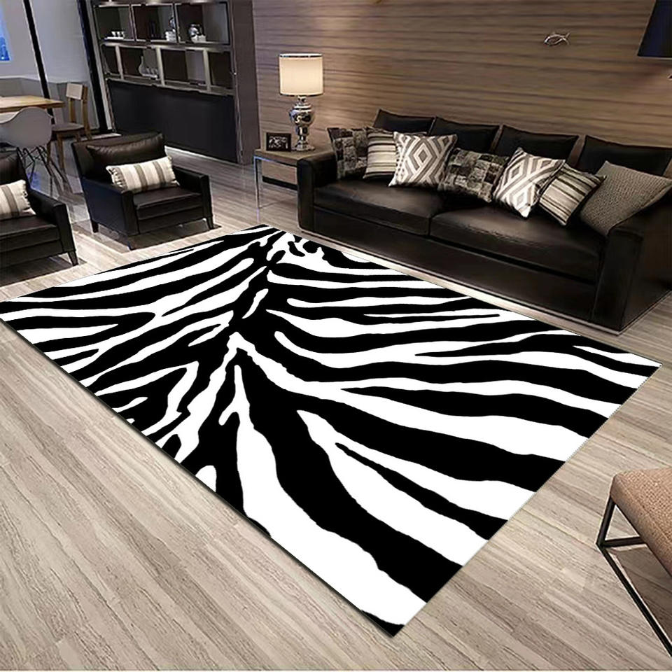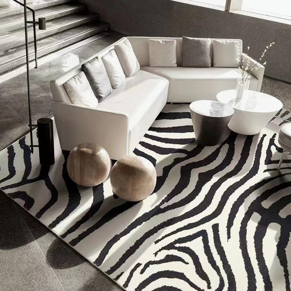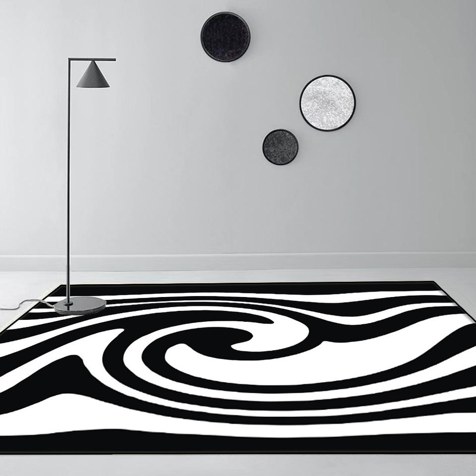 Tappeto da 10mm antiscivolo moderno fatto a macchina nero bianco per soggiorno e camera da letto,