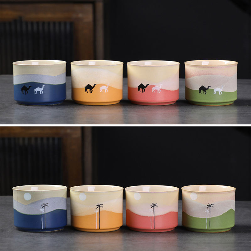 Tazza da caffè in ceramica di lusso leggero e Set piattino caffè Espresso Latte Cappuccino tazza da caffè senza manico cammello arabo tazza da tè