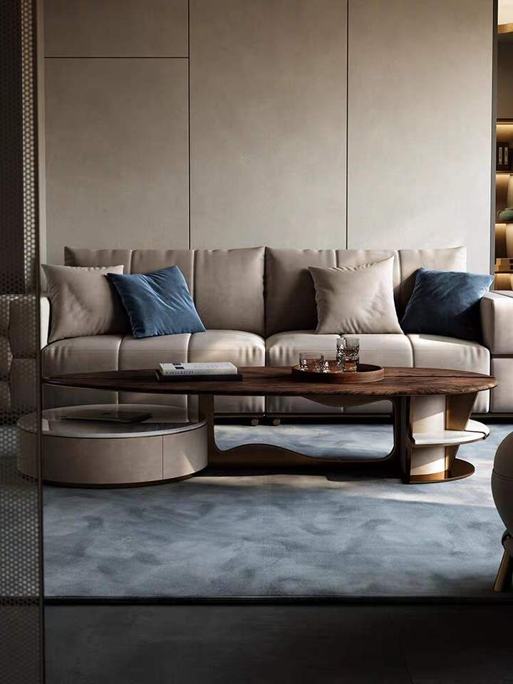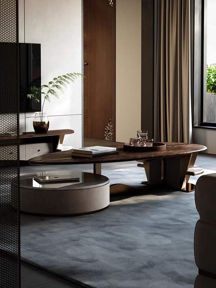 Tavolino da Caffè di Lusso Leggero Forma Speciale Moderno Minimalista in Noce Nero per Villa Soggiorno Tavolo da Tè di Alta Qualità
