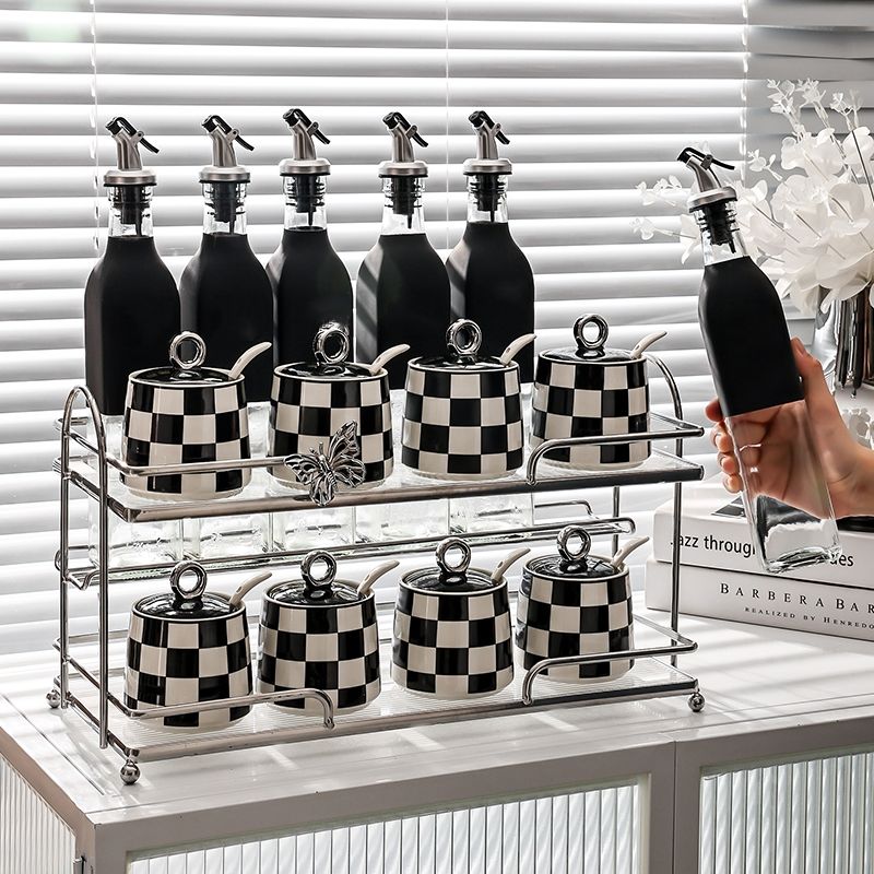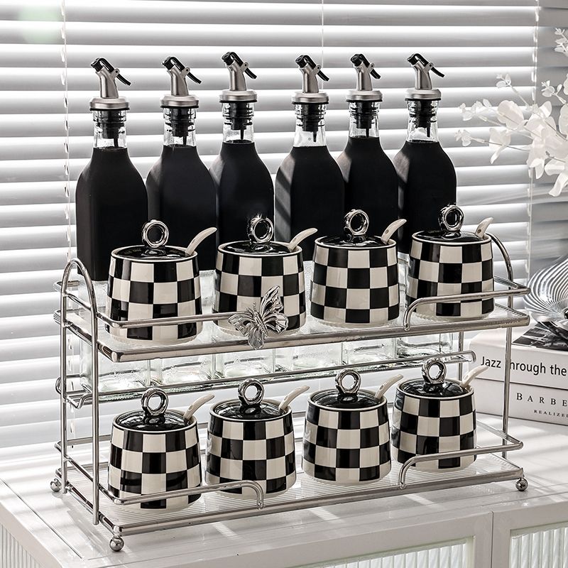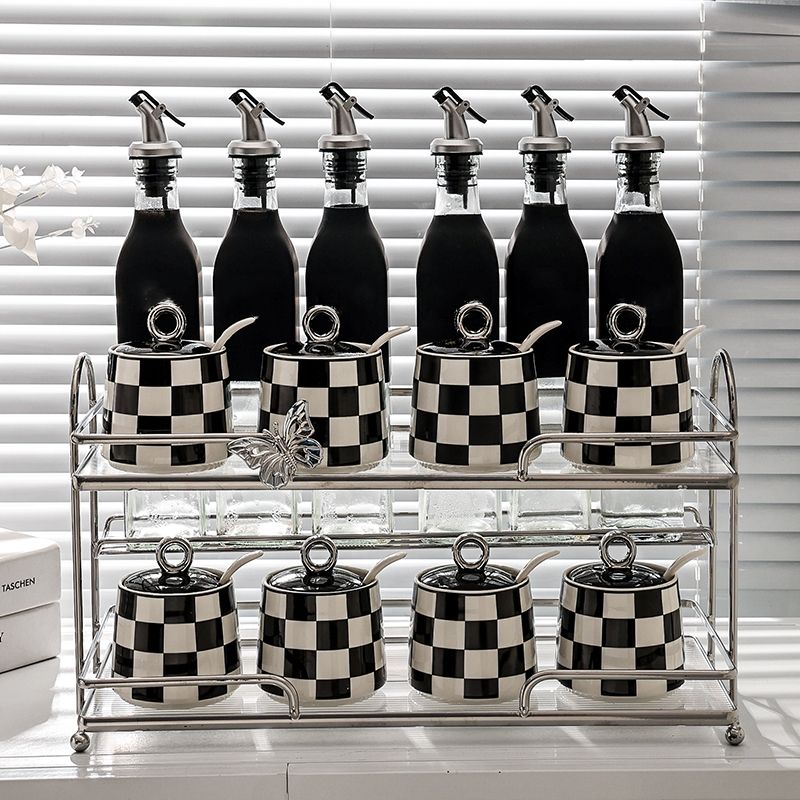Set di accessori da cucina di lusso leggero porta attrezzi ripiano domestico con vasetto di spezie in ceramica e vasetto di vetro olio