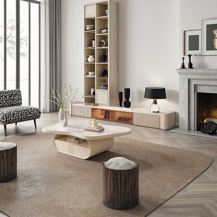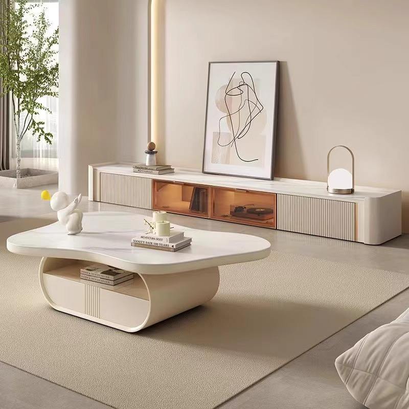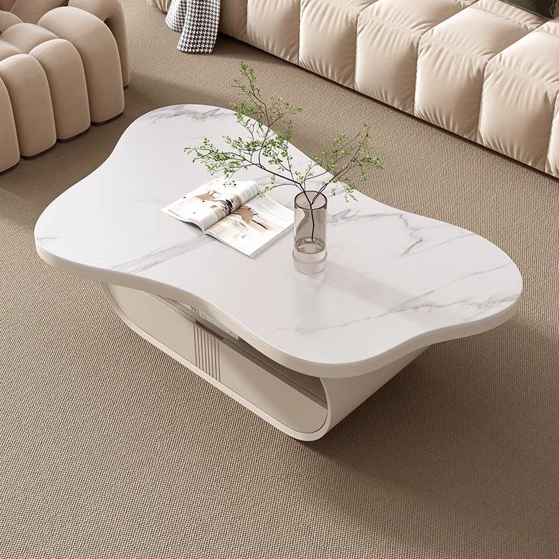 Tavolino da Caffè Moderno e Semplice in Stile Crema, Design Wabi-Sabi con Piano Irregolare a Nuvola per Soggiorno