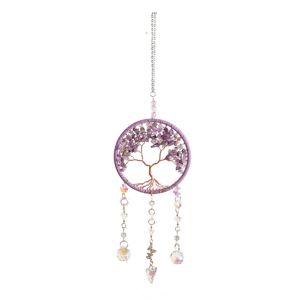 Luce di lusso nordico in stile pietra di cristallo tessuto a mano albero della vita per la decorazione della stanza campanello del vento acchiappasogni