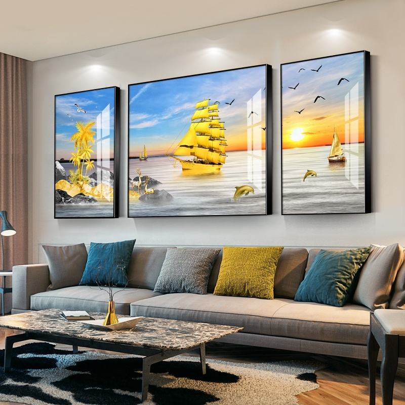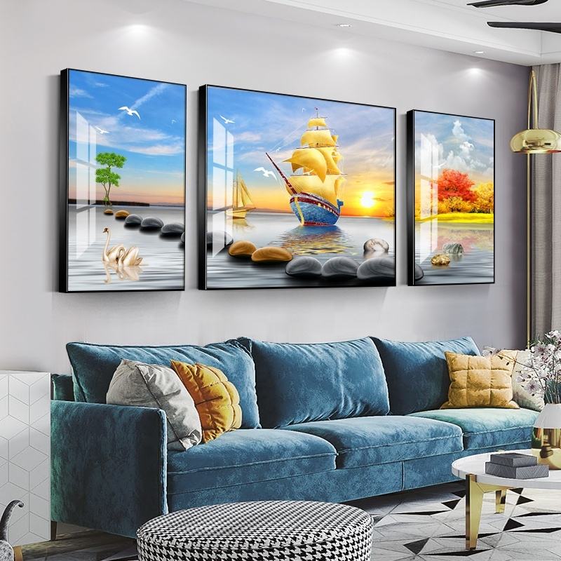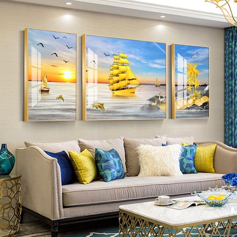Pittura di cristallo leggera della porcellana del diamante della barca a vela di lusso leggera per la decorazione del fondo del sofà del salone