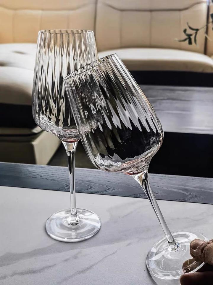 Calice da Vino Rosso Trasparente di Lusso Leggero con Motivo Verticale, Bicchiere Creativo a Pancia Larga per Uso Domestico e Celebrazioni con Champagne