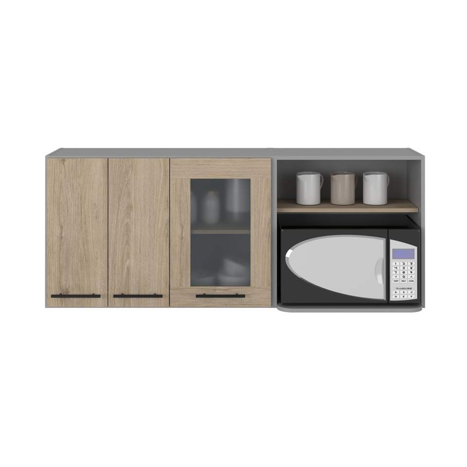 Vetrina in Vetro e Legno di Pino, Montata a Parete, con Doppia Porta per Uso in Cucina