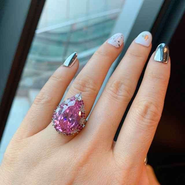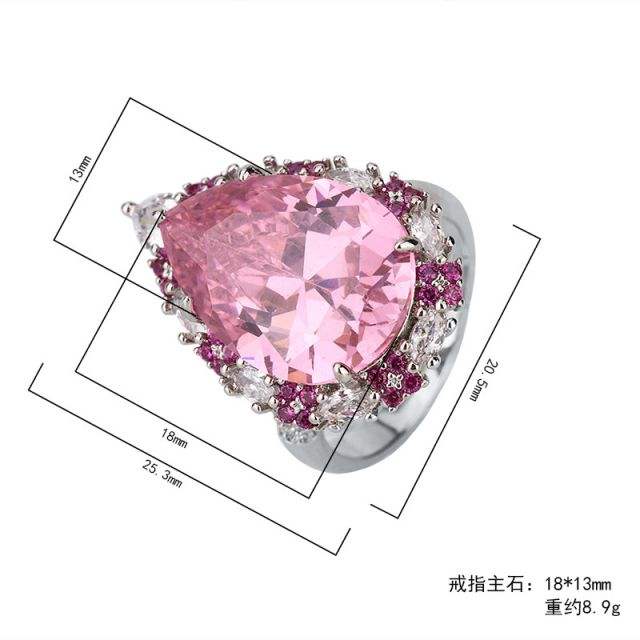 Light Pink Teardrop Cubic Zirconia Ring Brass Pear Cut Cocktail Engagement Wedding Anniversary Band Rings
