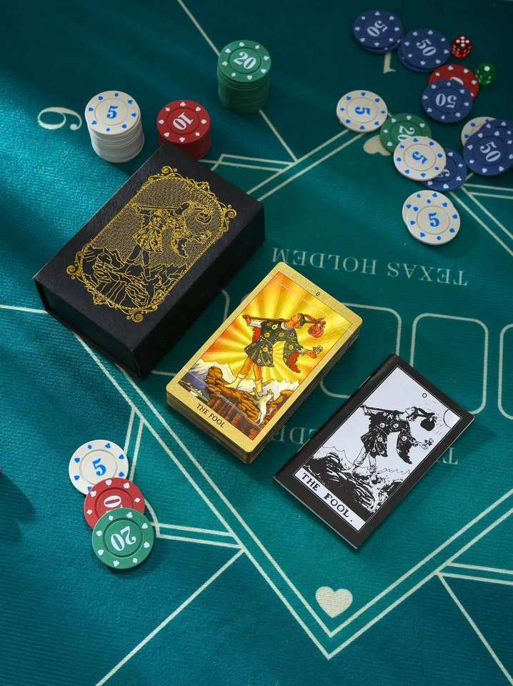 I veggente di luce giocano a carte con il bordo d'oro affermazione blu imparando la guida del mazzo Online inglese con tarocchi stampati