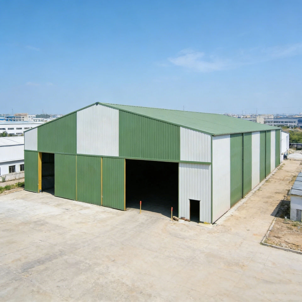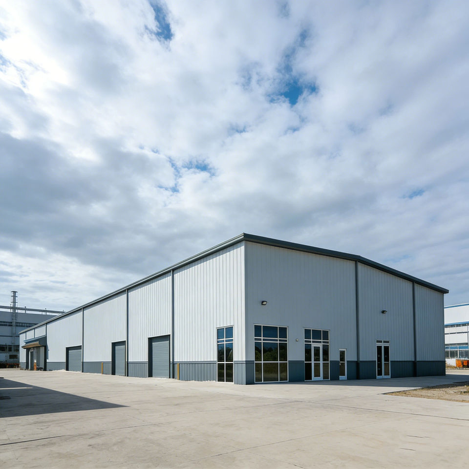 Capannone in Struttura Leggera d'Acciaio e Linea di Produzione con Design a Grande Campata Libera e Supporto per Disegni Tecnici