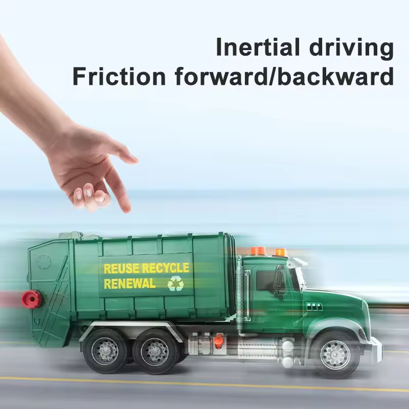 Camion della Spazzatura Giocattolo con Effetti Luminosi e Sonori, Piccolo Veicolo a Frizione per il Riciclaggio, Camion Verde per la Raccolta Rifiuti per Bambini