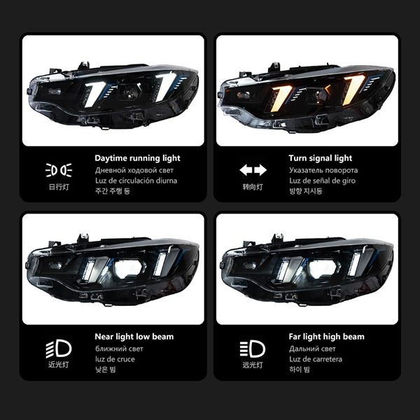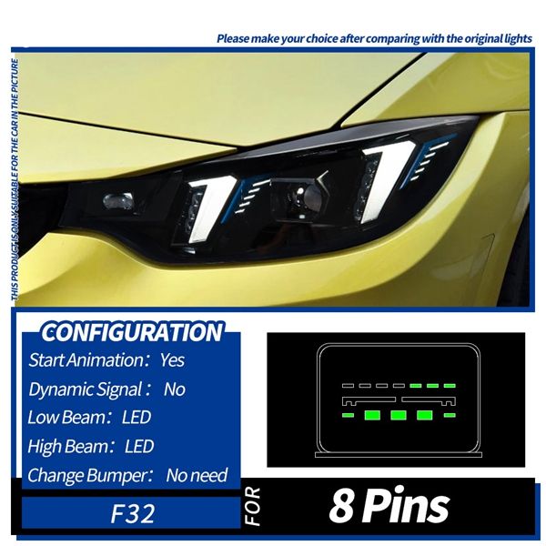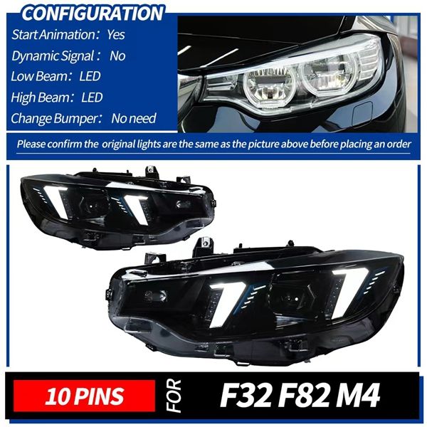 Faro a LED per BMW Serie 4 F32 F36 F82 2013-2020, Gruppo Fari a LED Stile Fang con Lente Proiettore Bicolore