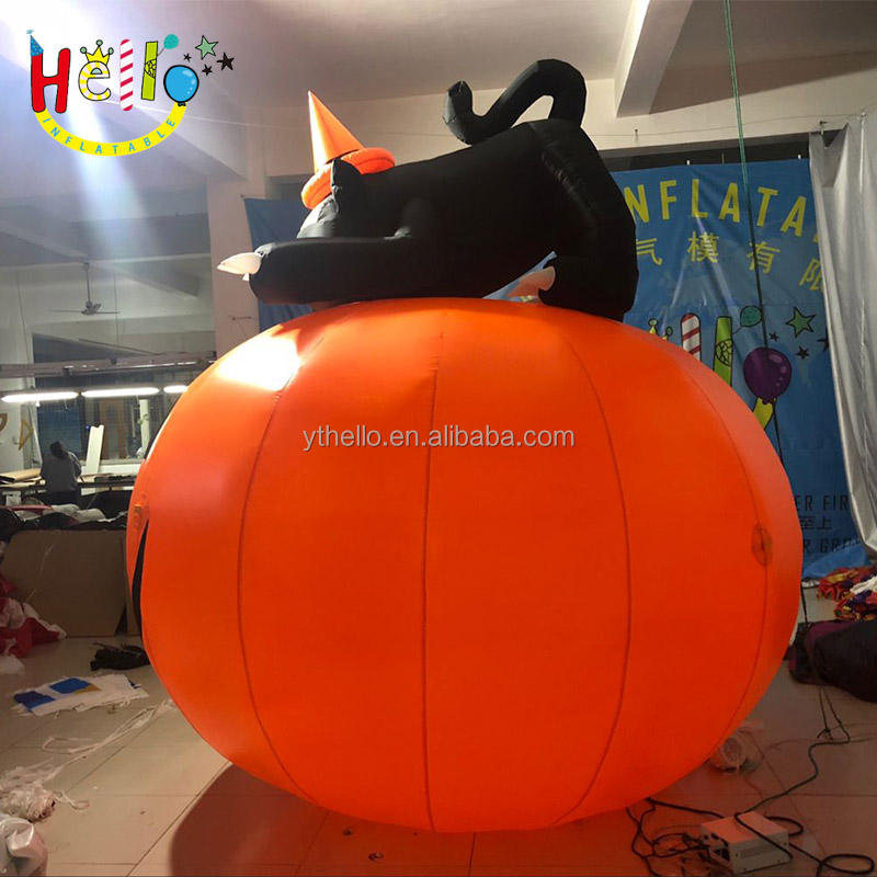 Acceso grande gatto nero gonfiabile di halloween aufblasbare katze sulla zucca