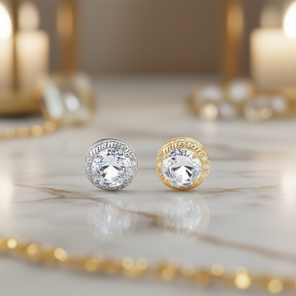 Lightning Crystal Stud Earrings 925 Silver 18K Gold Plated Bezel Setting Women's Classic Everyday Wear
