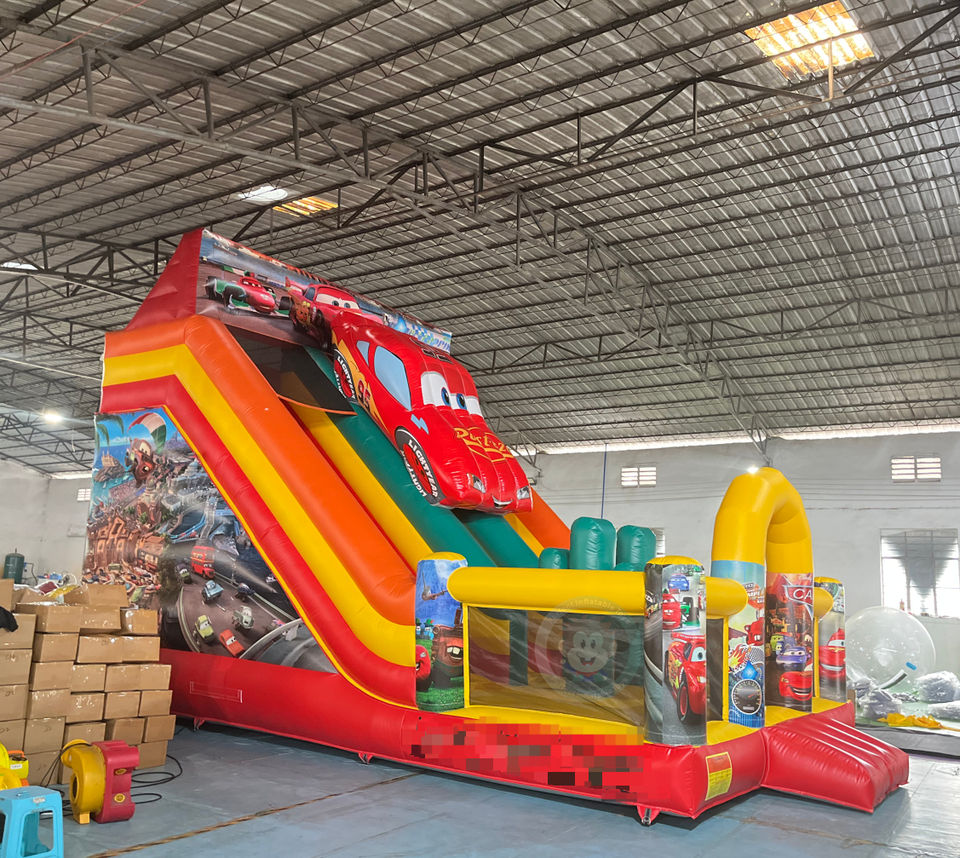 Scivolo Gonfiabile Doppio a Tema Lightning McQueen, Castello Gonfiabile Rosso con Percorso a Ostacoli per Eventi
