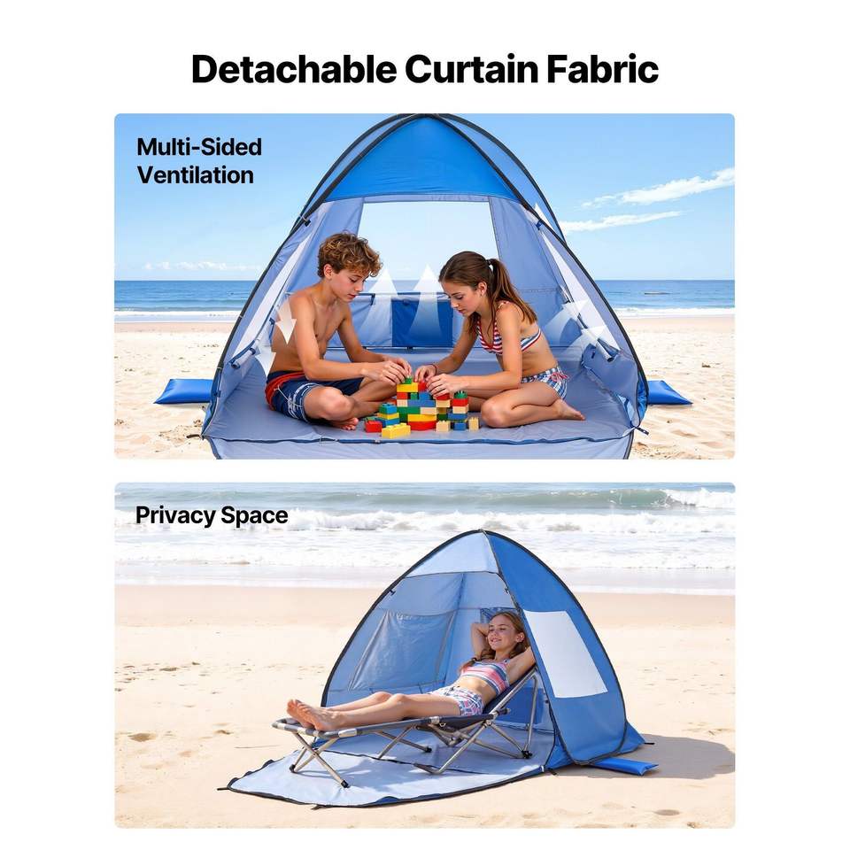 Tenda da Spiaggia Portatile Lightwei per 2 Persone, Protezione Solare UPF 50+, con Borsa per il Trasporto, Tasche per la Sabbia e Tettoia Ombreggiante
