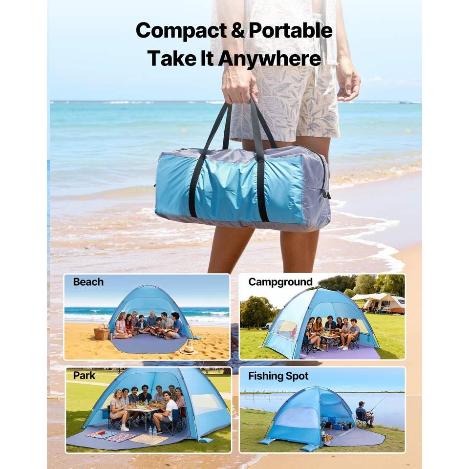 Tenda da Spiaggia Portatile Lightwei per 8 Persone, Protezione Solare UPF 50+, con Borsa per il Trasporto, Tasche per la Sabbia e Tettoia Parasole