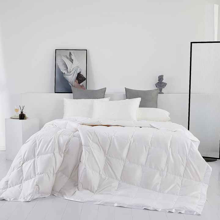 Coperta leggera in piuma d'oca 100% per piumino rinfrescante estivo con finiture in raso, piumino trapuntato sottile