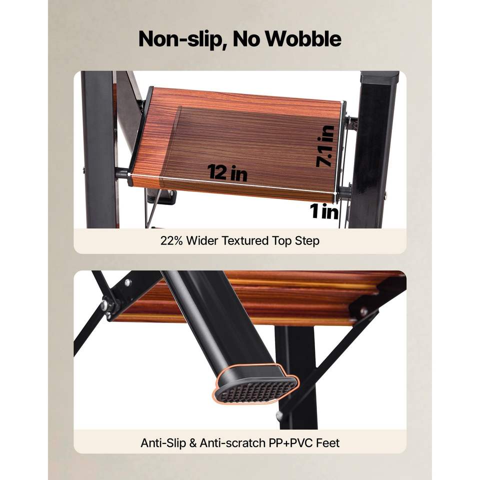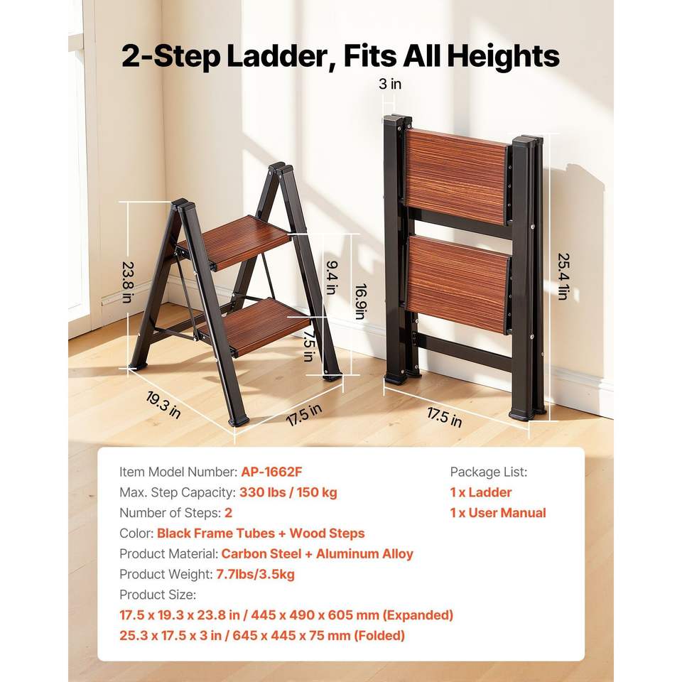 Scala Pieghevole Leggera a 2 Gradini con Pedale Antiscivolo Largo e Impugnatura Confortevole, Portatile in Alluminio, Capacità 150 kg